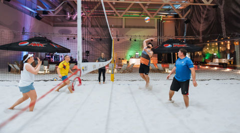 Varpaat hiekkaan ja pelaamaan! Suomen aktiivisin työporukka ei malta olla edes pikkujouluissa paikoillaan, kun hauskat lajit innostavat liikkumaan. Iloinen joukko arlalaisia tapasi Salmisaaren Biitsillä rennon yhdessäolon ja monipuolisten aktiviteettien merkeissä.