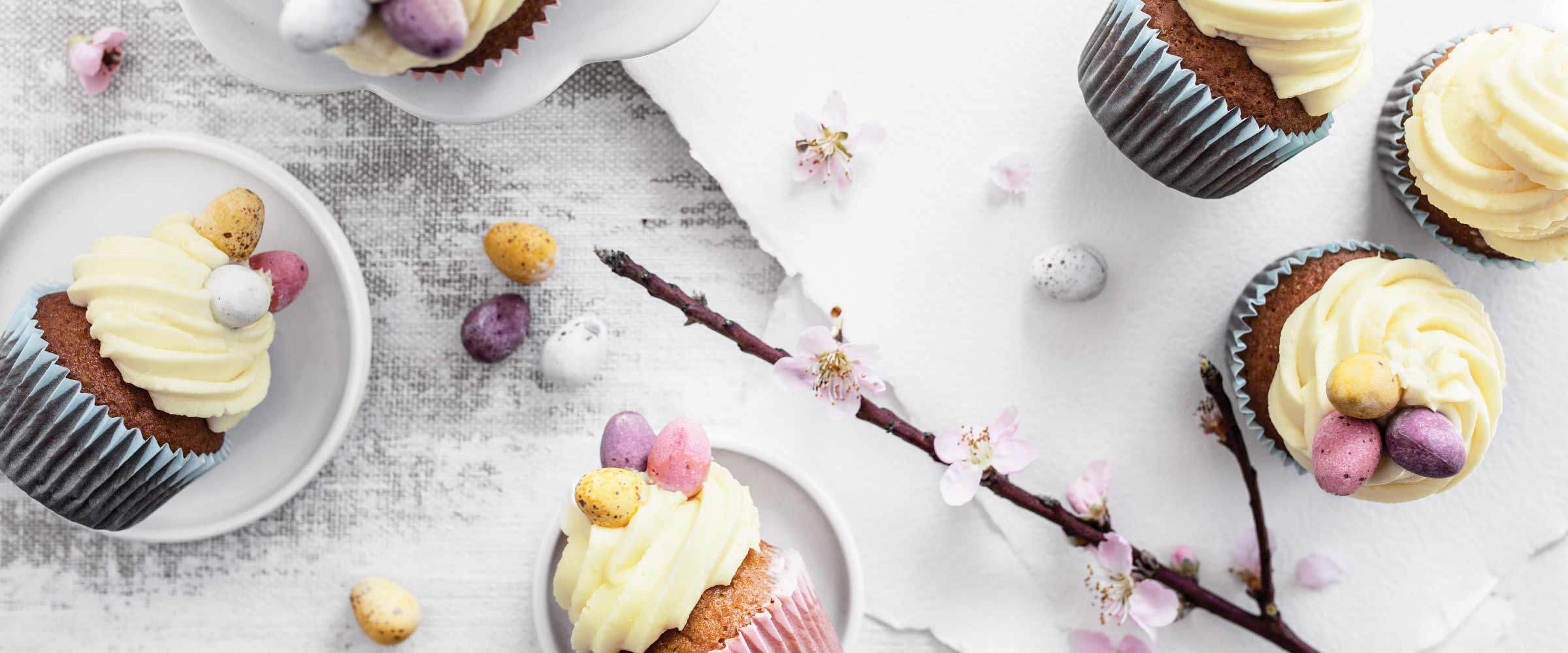 Perinteiset pääsiäisleivonnaiset ovat saaneet kilpailijoita uudenlaisista makeista herkuista, jotka eivät ole niin perinteikkäitä, mutta sitäkin herkullisempia. Mehevät pääsiäismuffinssit hehkuvat pääsiäisen pastelliväreissä ja koristeeksi sopivat pienet pääsiäissuklaat. Jos haluat säväyttää vieraitasi, leivo juhlapöytään upea pääsiäiskakku suklaahöyhenillä, joka saa makua raikkaasta persikka-passion leivontarahkasta ja näyttävyyttä värikkäistä suklaahöyhenistä.