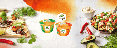 Arla Lempi Texmex creme fraiche –uutuudet: lempeän tulinen mango-chili ja raikkaan kirpeä lime-korianteri. Levitä tortillojen väliin tai viimeistele tacot lusikallisella täyteläistä crème fraichea. Maistuu erinomaiselta myös dippikastikkeena nachojen tai kasvisten kanssa.