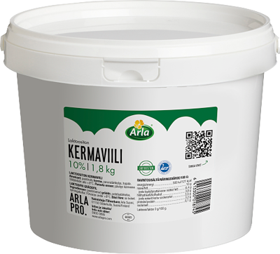 Arla Pro Arla Pro kermaviili 10 % laktoositon 1,8 kg 1800 g Ravintosisältö per 100 g energia 502 kJ / 120 kcal rasvaa 10 g josta tyydyttyneitä rasvoja 6.6 g hiilihydraatti 3.8 g josta sokereita 3.5 g proteiinia 3.1 g suola 0.1 g 0 g Ainesosat Pastöroitu kerma, perunatärkkelys ja hapate Pakkauskoko 1800 g Allergiaseloste Maito Valmistusmaa Suomi EAN-koodi 6413300018745 Tuotenumero 56850