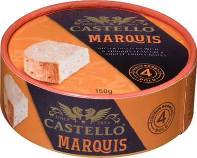 Marquis on täyteläinen ja mieto, pehmeä ja runsasrasvainen, pinnalta ja sisältä homekypsytetty kittipintainen puna-sinihomejuusto. Laktoositon. Lisäaineeton. Voimakassuolainen.