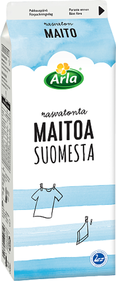 Arla Rasvatonta Maitoa Suomesta on valmistettu Suomessa suomalaisesta maidosta. Maito on monipuolinen ravintoaineiden lähde. Maito sisältää runsaasti proteiinia ja kalsiumia, jonka imeytymistä parannetaan lisäämällä maitoon D-vitamiinia. Raikas rasvaton maito maistuu koko perheelle niin ruokajuomana kuin janojuomanakin. Pastöroitu.